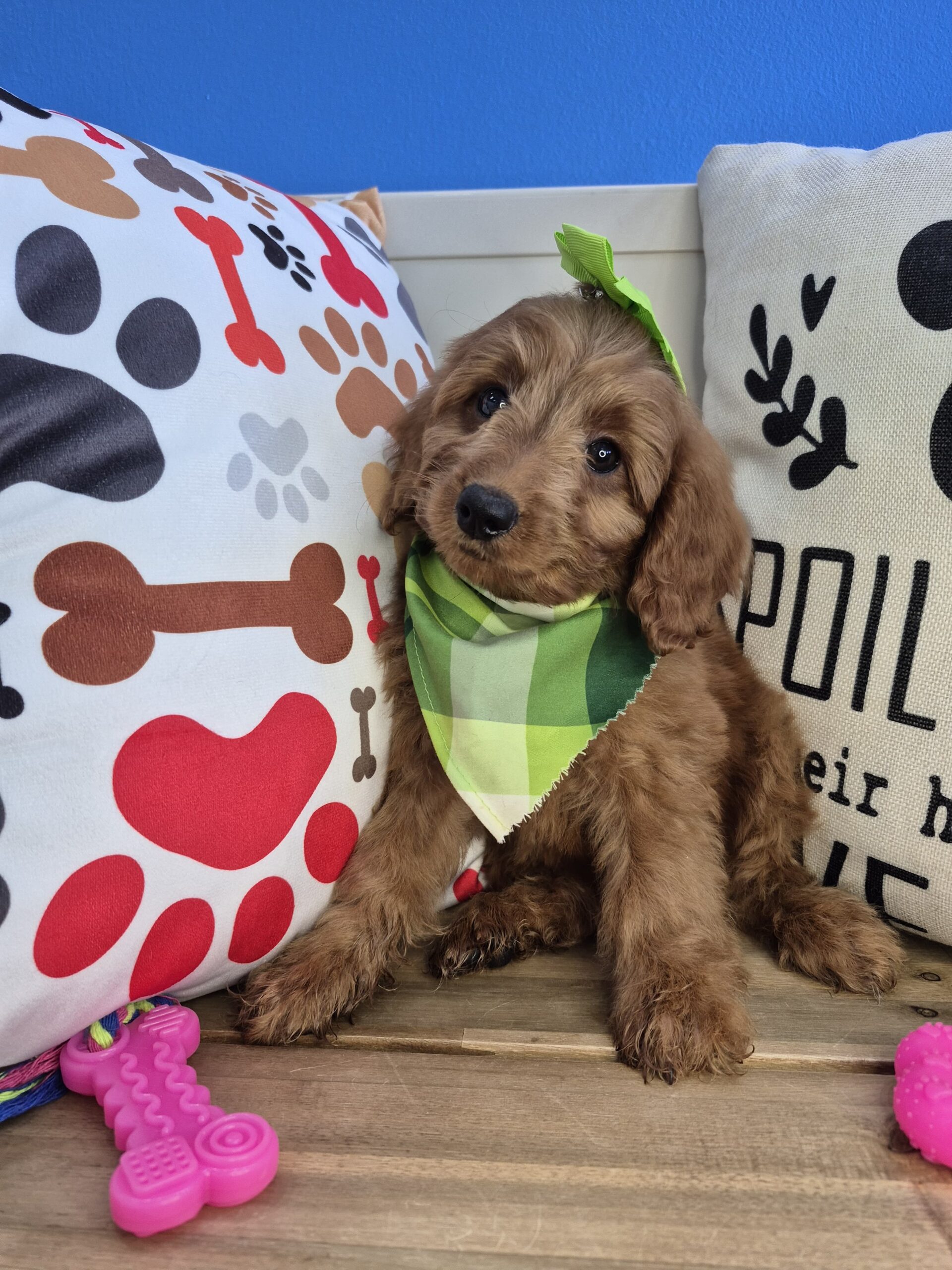 Arf! I'm Sarai, a cute female Goldendoodle puppy. Bring me home today and I'll bring you heaps of joy. I fling a dashing red & white coat and was born to parents of friendly and calm personalities. I am great with kids and will arrive home healthy, socialized, and well bred. If you call me yours and train me well, I’ll be your new best friend ready to join in whatever you are up to. While I first entered the world on 2025-11-30. You can either pick me up or I can be shipped straight to you with love. Let's start making memories together! Pettito strives to bring high-quality pups to a convenient location near you. Did you fall in love with this puppy, but you are not in Oklahoma City, OK? No problem! Come see this puppy in person at our store, or contact us to schedule a video call. Call us today at (405) 754-1845 to schedule your meet and greet. Click here to see more Goldendoodle puppies.CUSTOMER REVIEWS